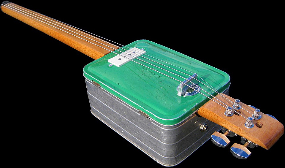 c1940s Two-Tone Green/Silver Aluminium "SANDWICH BOX" Body, Adapted c.1940s Beech Table-Leg Neck