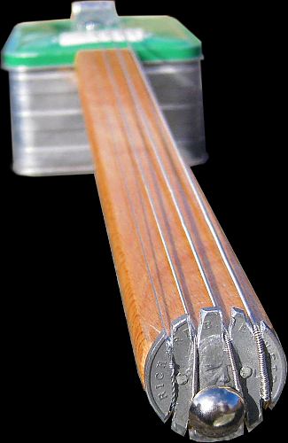 Carved Aluminium Bridge/Under-Saddle Soundhole, Adapted Aluminium Coin Nut/String-Retainer.
