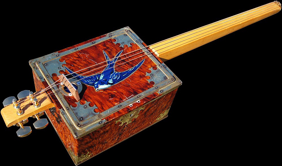 Rosewood Bridge, Adapted Old Penny Nut/String-Retainer, Piezo Transducer, Gold Plated Tuners