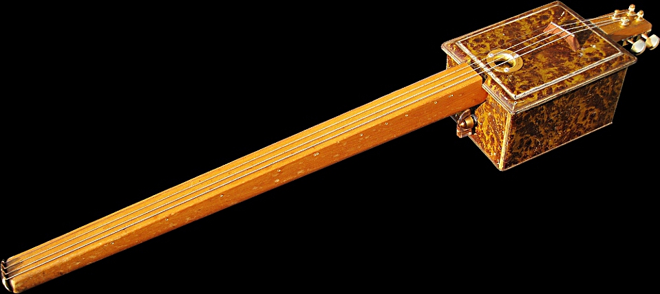 c.1940s Walnut Print Tin Body, c.1940s Beech Table Leg Neck, Gold Headstock