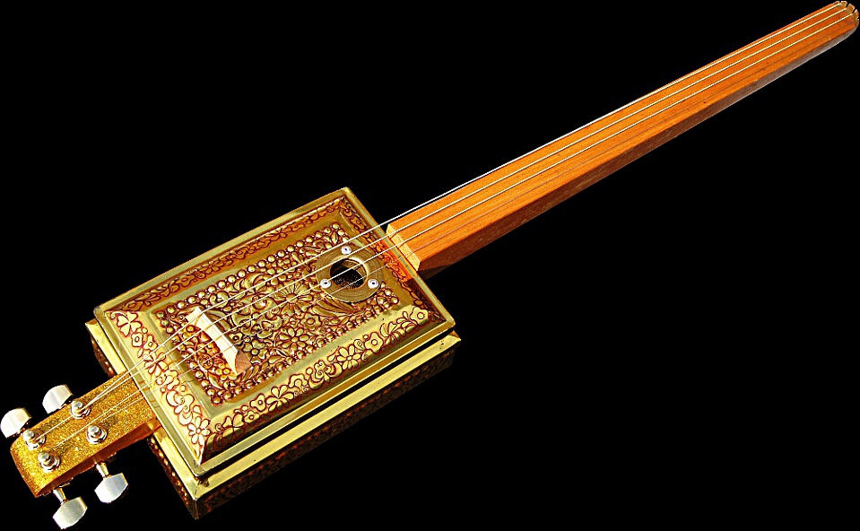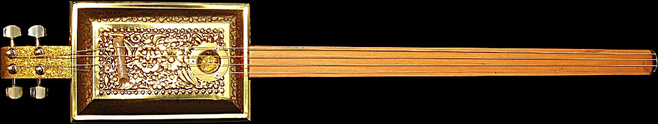 c.1940s Embossed Golden Casket Tin Body, c.1940s Beech Table Leg Neck, Gold Headstock