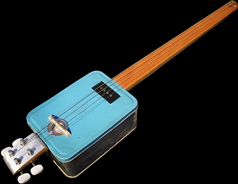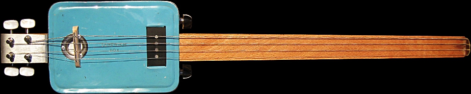 c.1940s Blue/Silver Aluminium 'SANDWICH BOX' Tin Body, c.1940s Beech Table Leg Neck