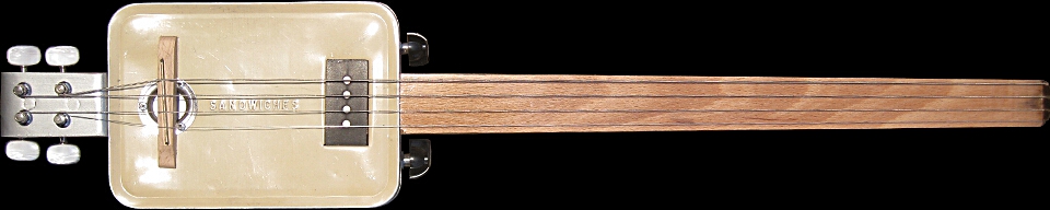 c.1940s Cream/Silver Aluminium 'SANDWICHES' Tin Body, c.1940s Beech Table Leg Neck
