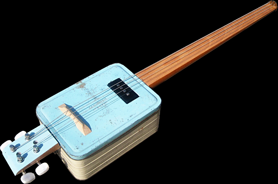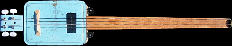 c.1940s Blue/Cream 'SANDWICH BOX' Tin Body, c.1940s Beech Table Leg Neck