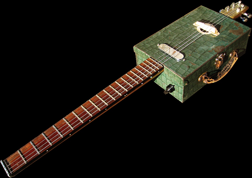 1920s 'Maison Lyons' Green Alligator-Skin Suitcase Tin Body, c.1940s Beech Table Leg Neck