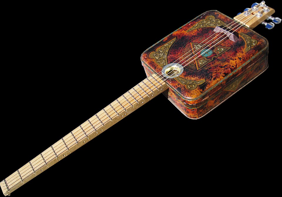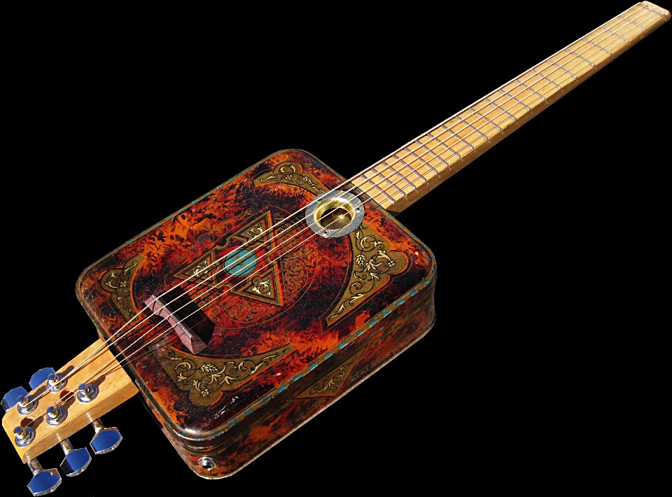 1950s Faux 'Brass-Inlaid Wood' effect Tin Body, c.1950s Beech Table Leg Neck