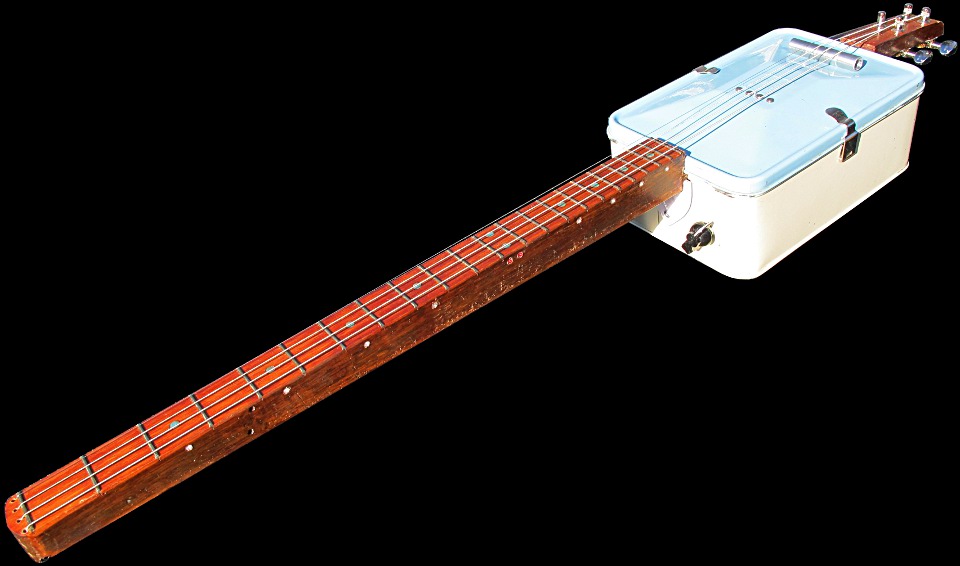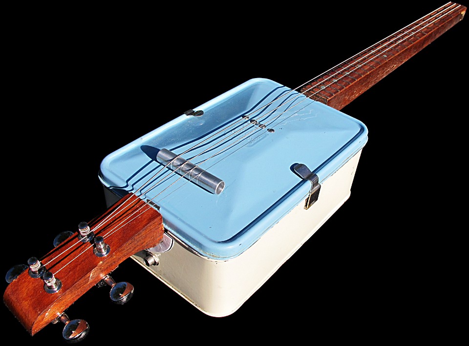 c.1930s Blue/Cream Two-tone BREXTON "Food Box" Tin Body, Antique Reclaimed Hardwood Neck