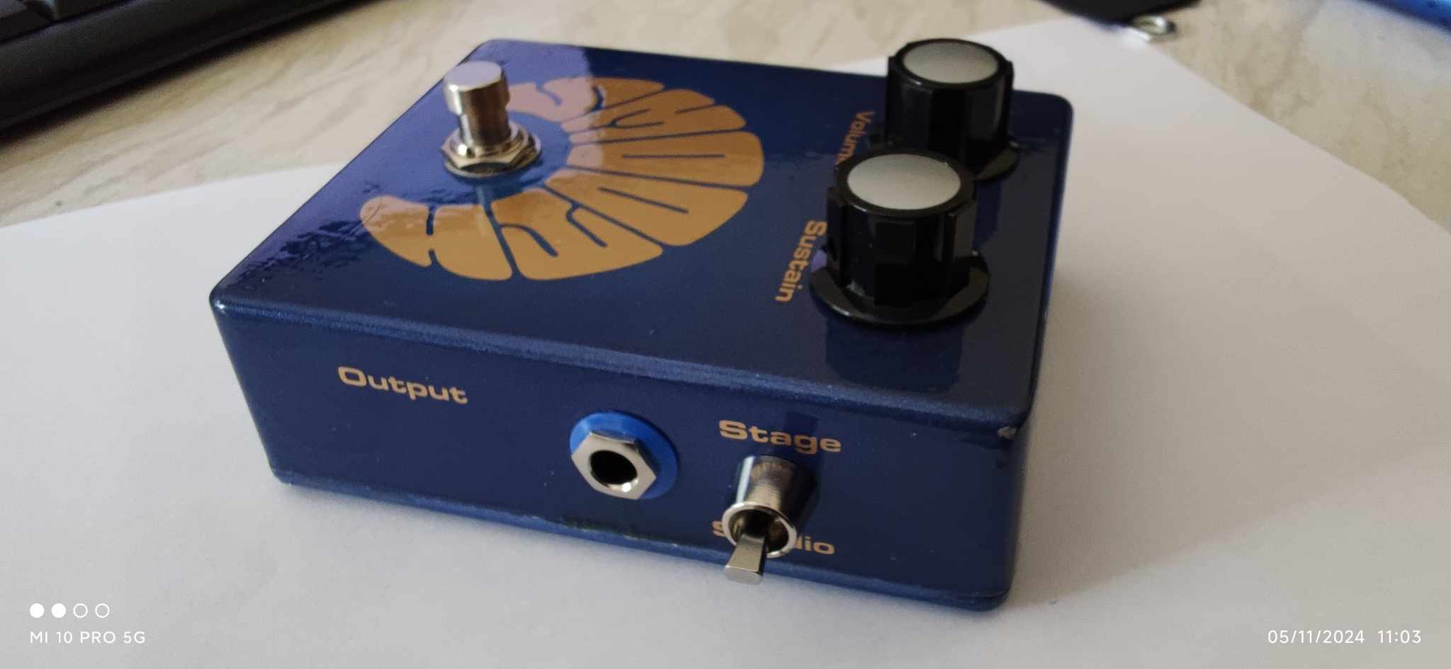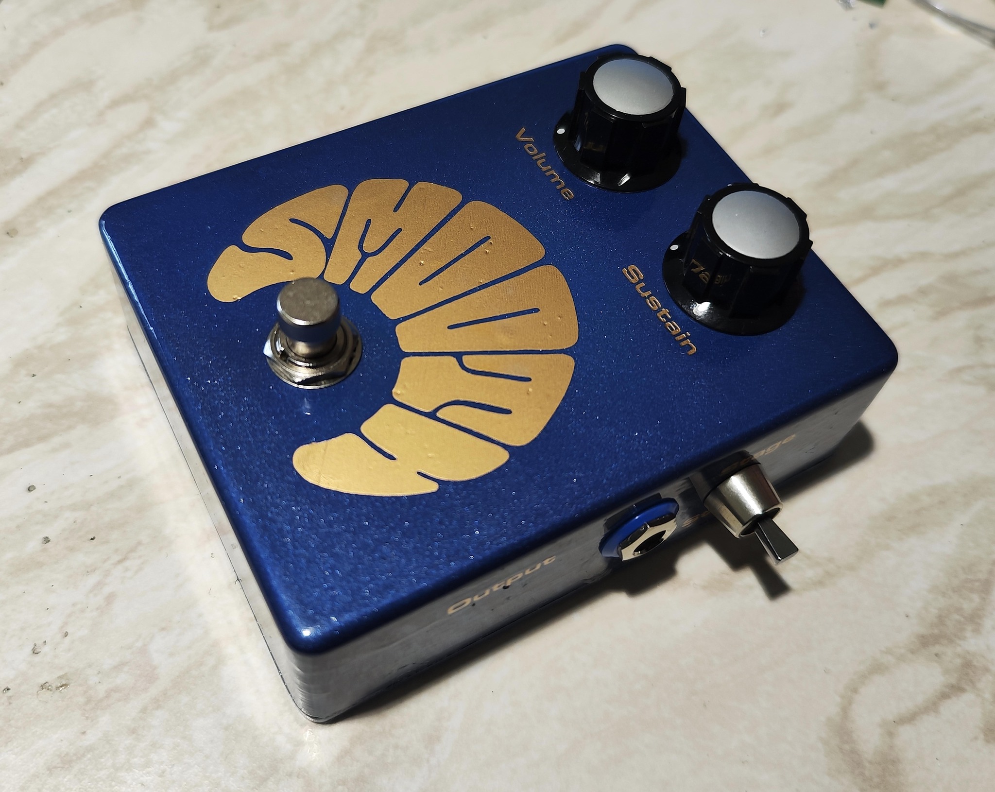 Tony Koorlander: It's based on my 'imagineering' of what guitarists like Jeff Beck, Eric Clapton, and Brian May had in their 'secret kit' - so two levels of Top Boost each having a boost curve to match a particular sound, the centre position - is no boost - so exactly what the original pedal does. The Top Boost setting will also determine the character - it is REALLY good. The labels still say Stage and Studio - but they are for the two TOP Boost settings. MY top boost circuit is original - I have heard of the one you mention (Dallas Rangemaster) - but this is totally different in design as it is incorporated into a system compression curve that allows a wonderful enhancement of really clear top harmonics from the strings without clipping. UNIQUE. All of this is based on the original design concept from 1971, but due to having more development circuitry onboard - is capable of many nuances that could never have been done in 1971. The sustain level range is probably too much at the moment on one control - remember Stage was the 'normal' sustain, and 'Studio' was the OTT extension. In this box - I've used that name tag for the TOP Boost and tried to make the sustain a combination of the original studio. I now think it's too much with the TOP BOOSTs. People who don't understand how it is designed to work will overdo it and mess up the sound. It's a simple fix.