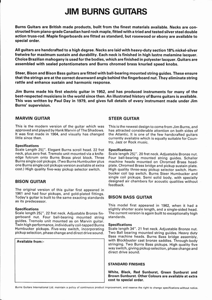 c.1981 Jim Burns Guitars brochure
