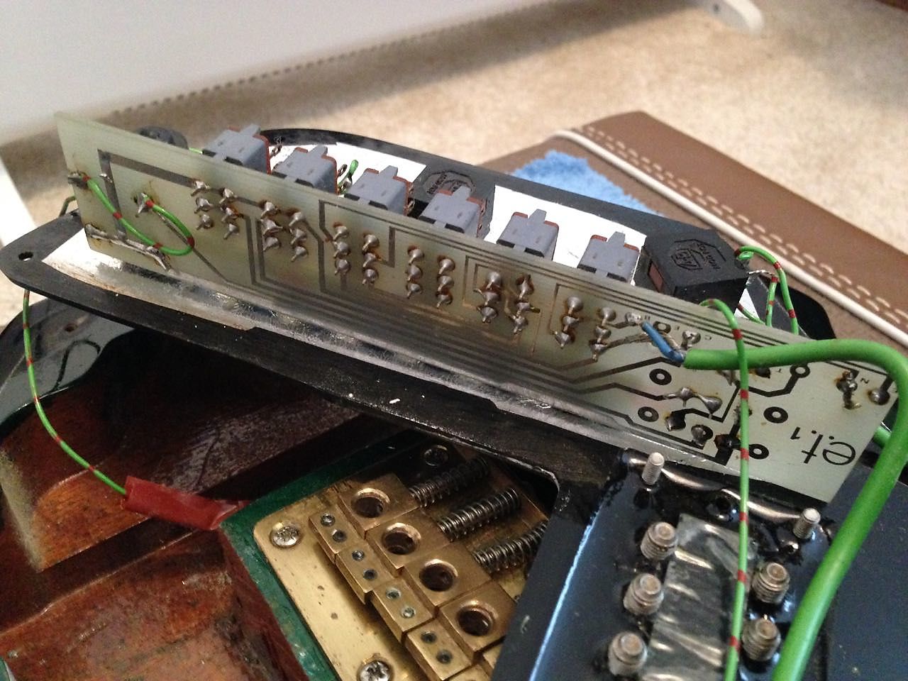 I have (seen?) one or two of this example(?) and as before I note the serial number is only three removed from the blueburst one I owned, which was 30603. There was definitely no manual for this or any other Jim Burns model - it was all the company could do to get the actual instruments out! Regarding the functions of the push-button bank, the pre-set selections are as follows: