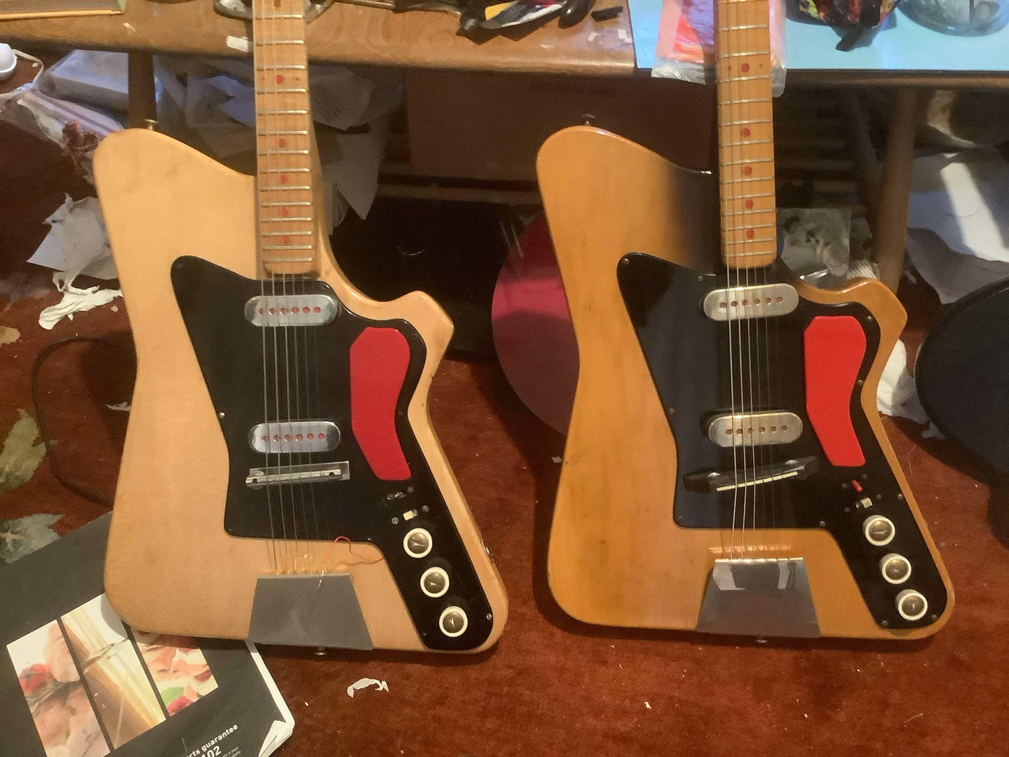 Around 2010 I was fortunate to locate four original but incomplete Roger 1963 matching bodies and necks 'in the white', bought from Hoyer/AMC who had in turn bought them at the factory sale when Roger went bust in 1970. I have been slowly finishing them up as Burns-Weill RP1G Super Streamline Deluxe Guitars.