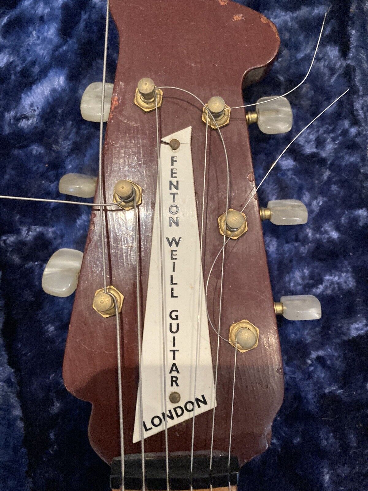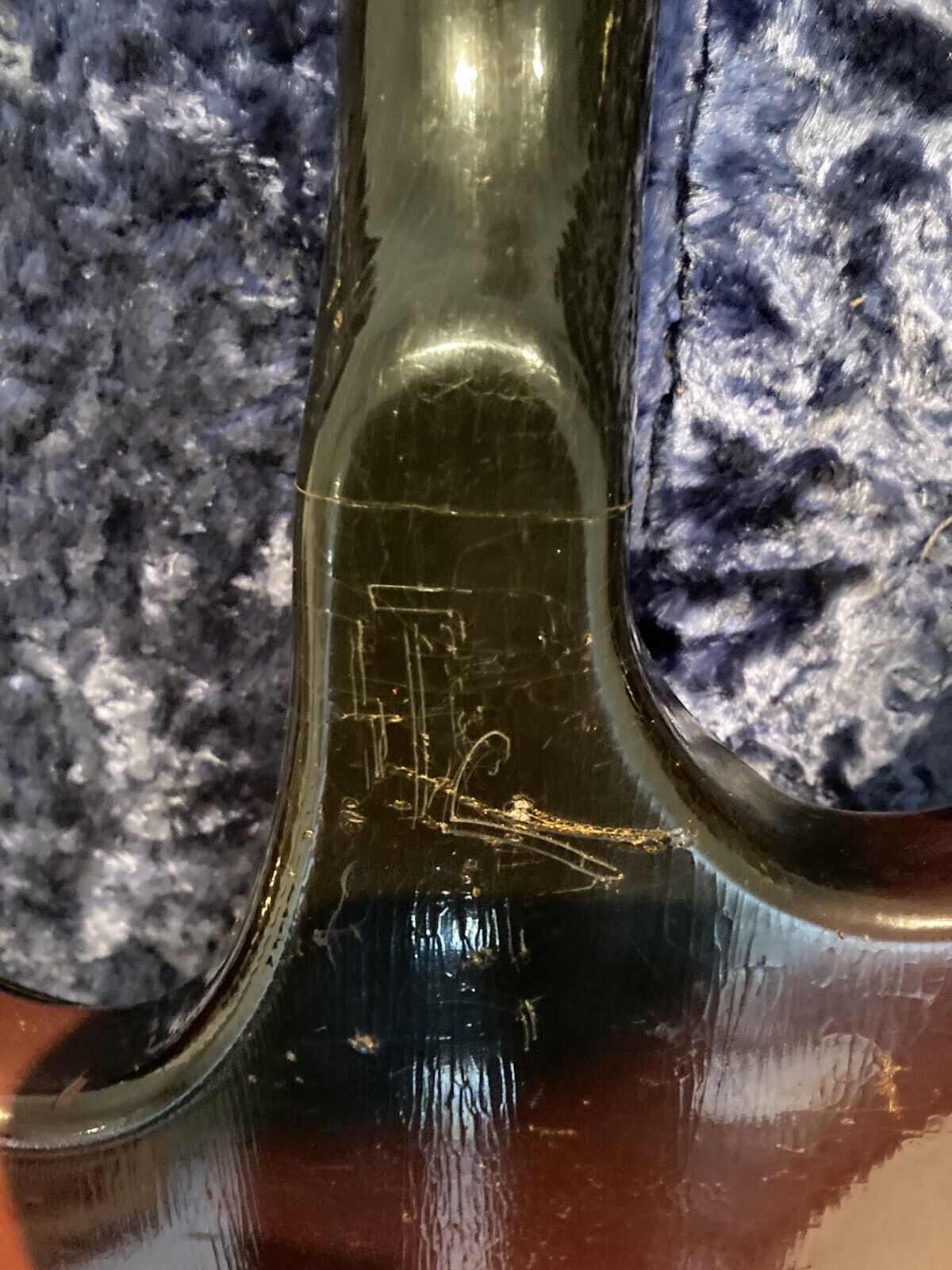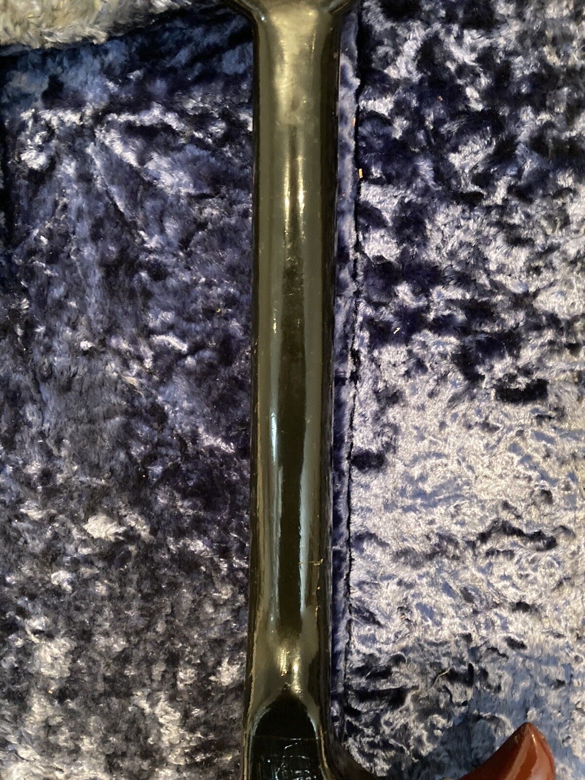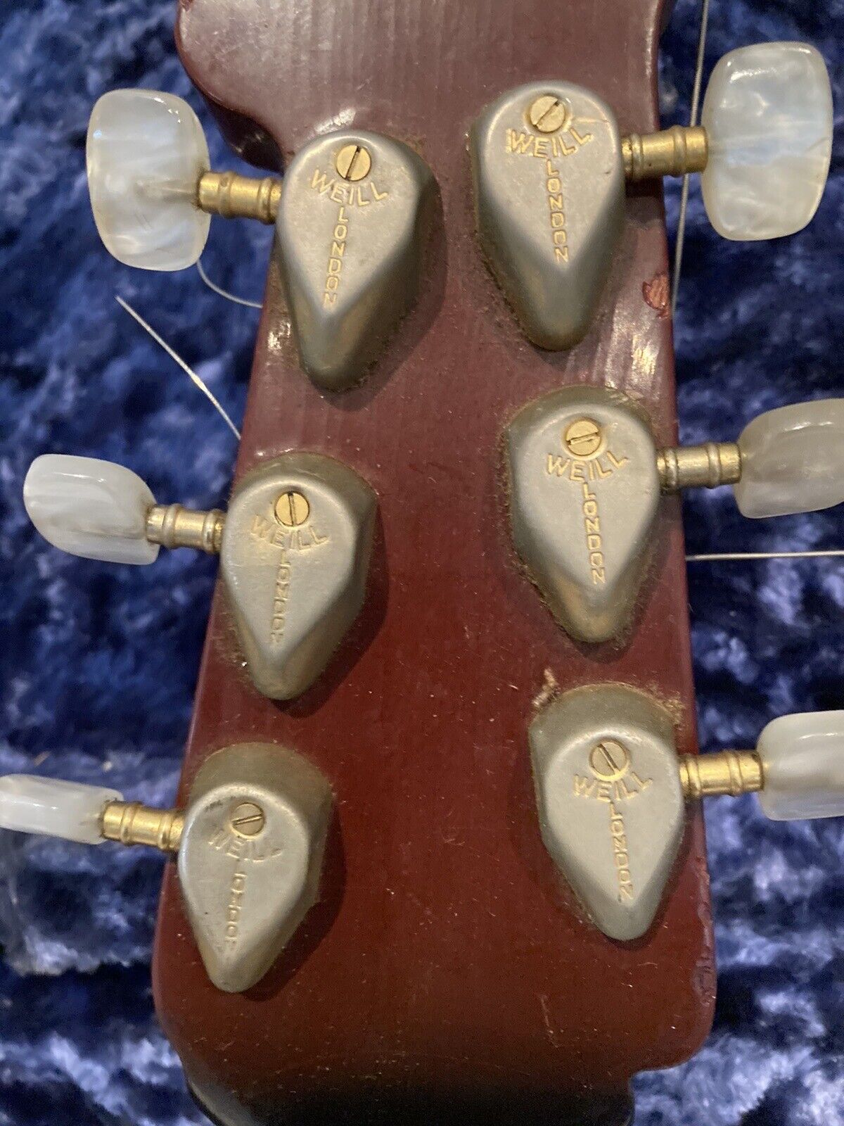 Transitional 2-colour amp-badge on 3-a-side headstock. Jack socket on side.