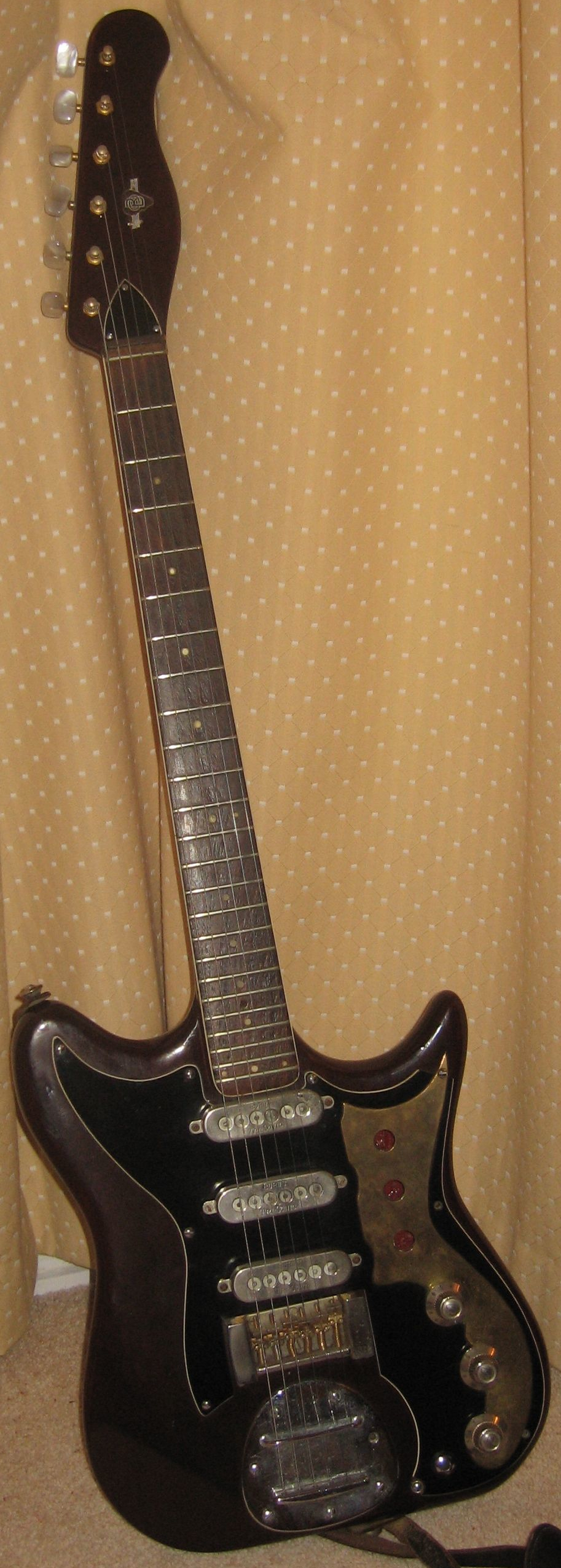 Same guitar before restoration/refinishing, with the wrong knobs and no secondary plate.