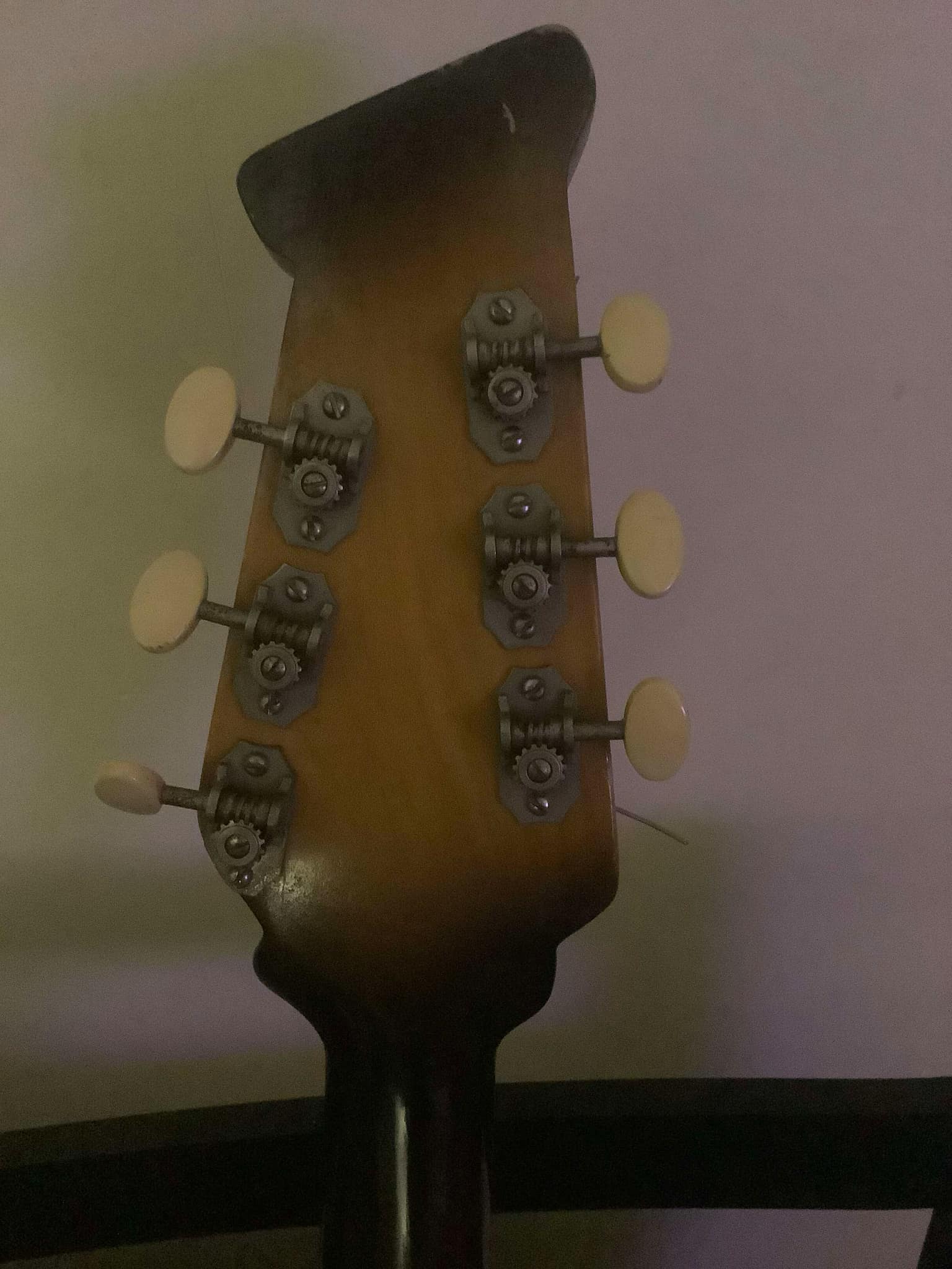 After renovation, with different knobs, tuners, lost 2nd guard.