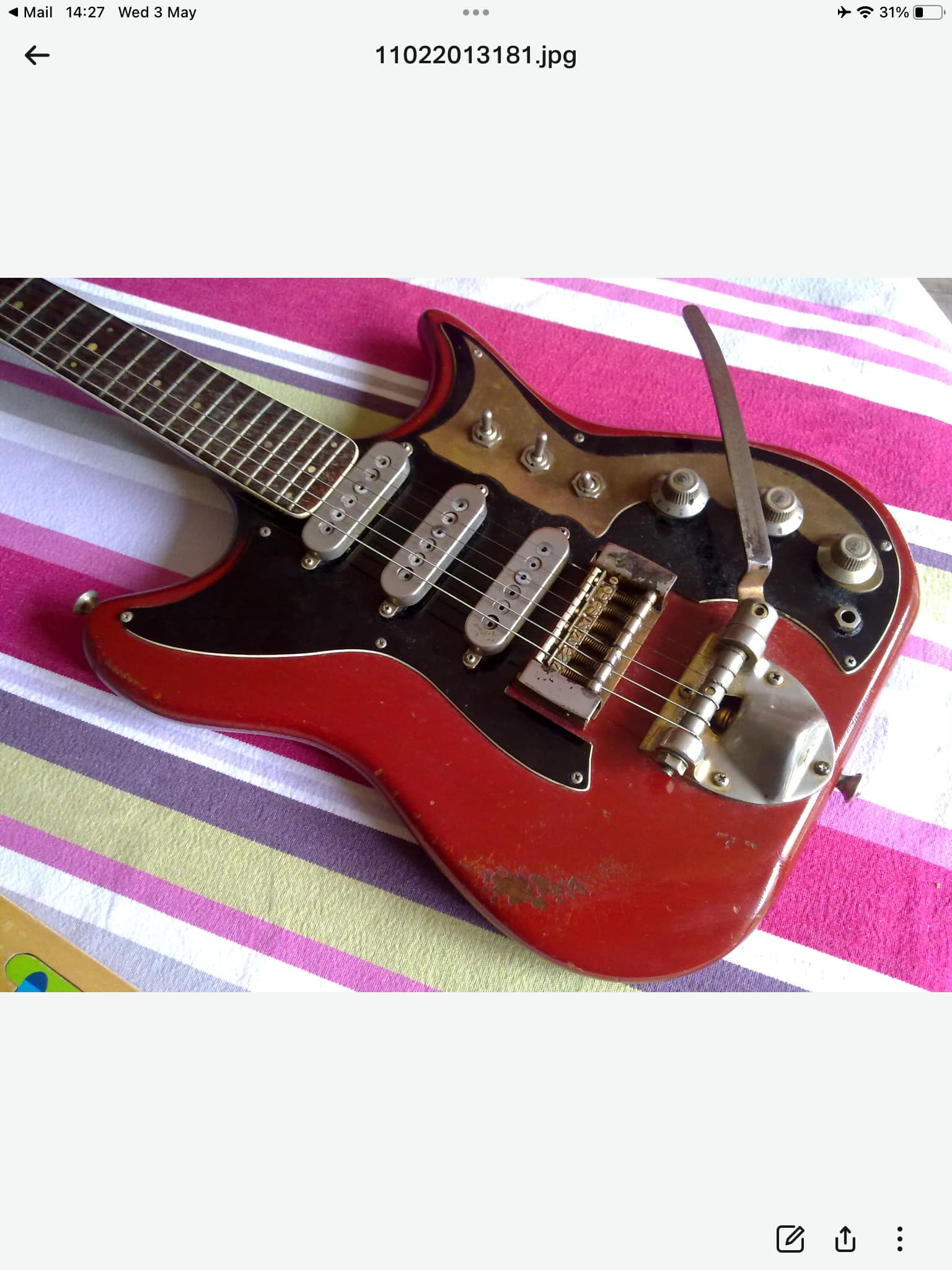 Another example with one changed knob and non-original tuners, looks to be refinished since it does not feature the 'blown-in' shaded neck: