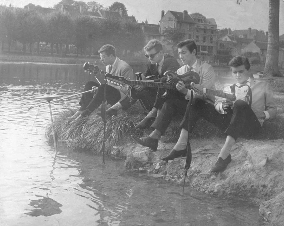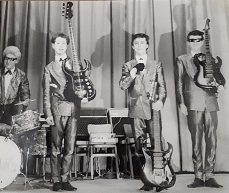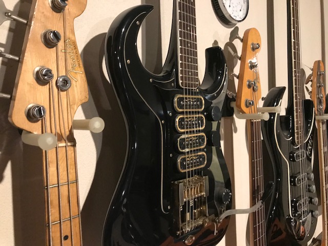 Below is Michael Vodi (bassist)'s band with both black and sunburst 4-pickup Bisons, and matching bass!
