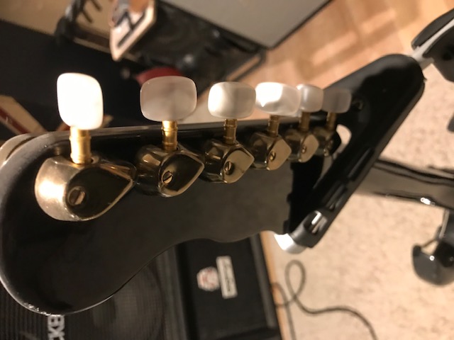 Pearloid Buttons on Gold-plated Tuners, Rosewood fingerboard