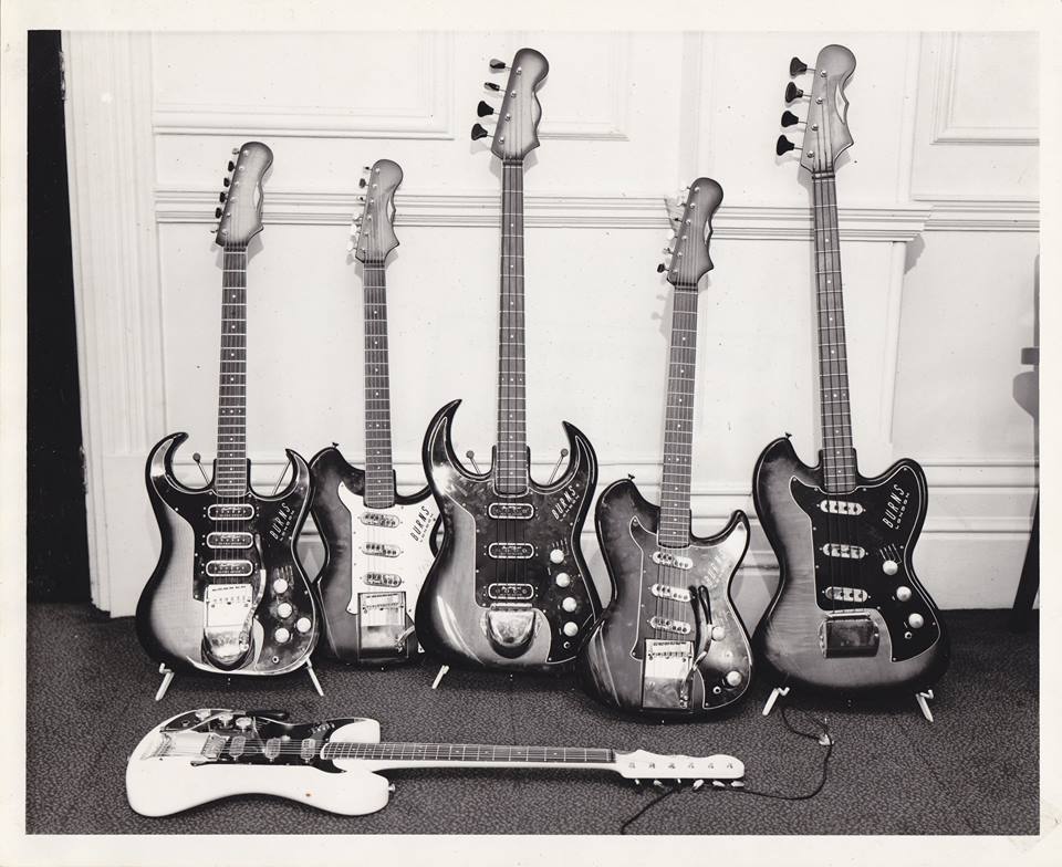 71 | Burns | Black Bison | Guitar | 4 Pick-ups, Gold plating, Bound Ebony fingerboard, UNKNOWN tuner buttons | Black | pictured in the May '62 Trade Advert | |