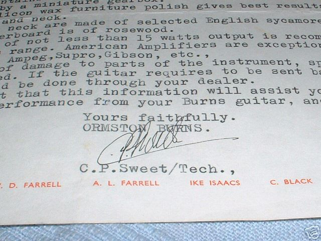 6976 | Burns | Virginian | Guitar | Marvin neck, Blank Rez-o-tube, large "Rez-O-matiK" on pickup covers | Natural Blonde | Prototype mk 2 | |