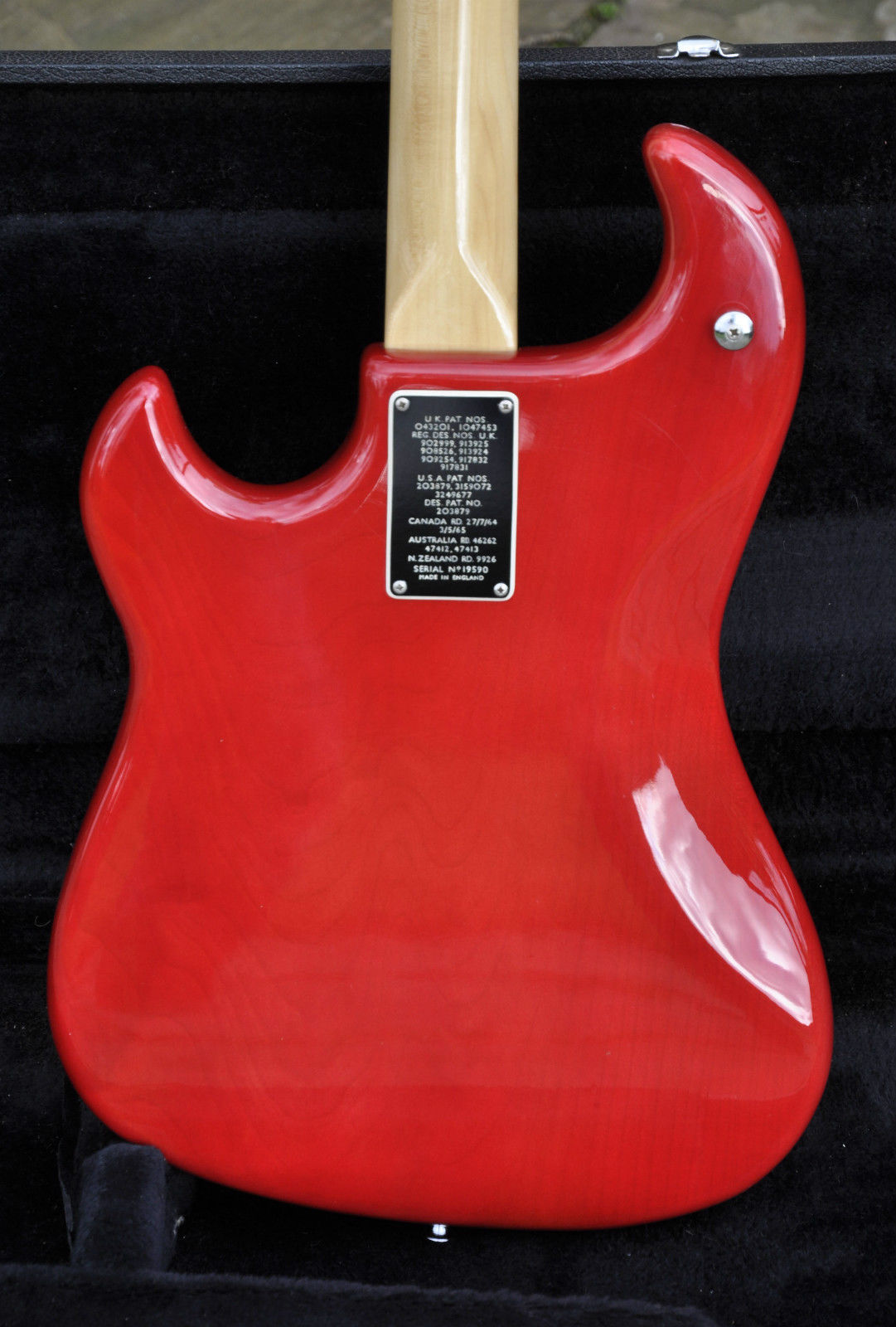 First advertised in December 1962, with a subtly-revised body shape with reversed waist and extended pickguard bass-horn, although this advert pictured a Jazz-derived Six-String Bass prototype.
