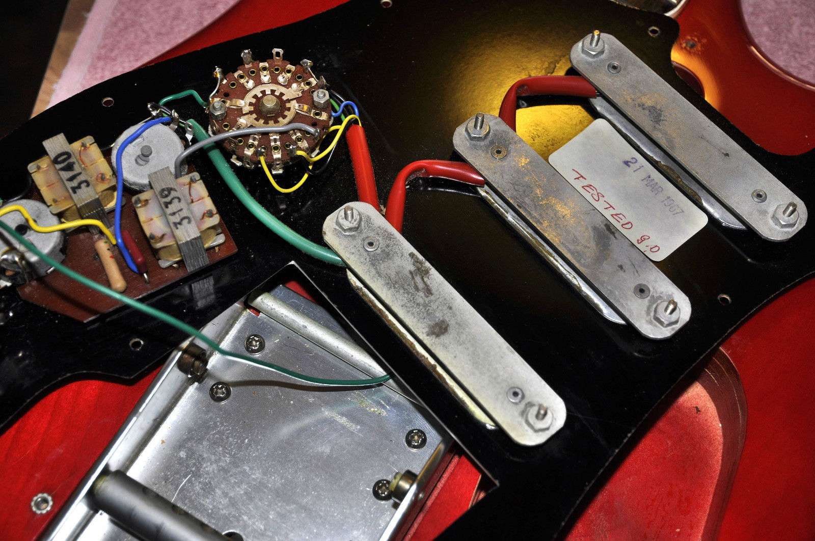 2-pickup Jazz featured plastic-buttoned Van Gents, the upmarket Split Sound version utilised Metal-buttoned Van Gents